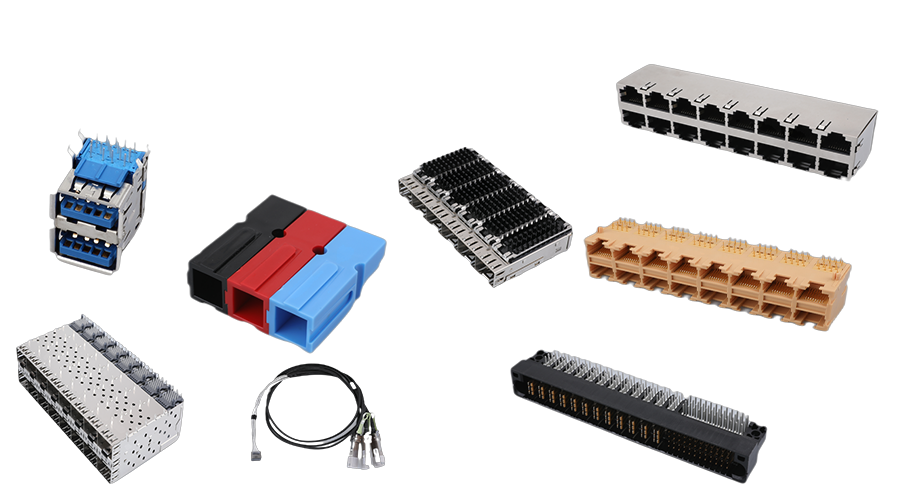 網(wǎng)絡(luò)連接器 (集成RJ45系列和普通RJ45系列)、高速連接器(SFP/QSFP/DSFP/CFP系列)、電源連接器、高速DAC和背板高速線纜組件、BTB連接器、網(wǎng)絡(luò)變壓器、RJ11連接器系列、USB&TYPE-C系列、精密五金件等。公司產(chǎn)品廣泛應(yīng)用于包括“5G/6G”在內(nèi)的網(wǎng)絡(luò)、通訊等行業(yè),并致力于滿足新能源汽車、高端裝備、智能顯示、軌道交通、機(jī)器人等高精尖終端領(lǐng)域?qū)B接器市場(chǎng)的需求。